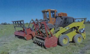 Babbitt Ranches provided a skid steer with carbide teeth mounted on a drum which rotate at a high speed to shred trees that leave wood chips behind to serve as mulch which helps retain soil moisture. The resulting removal of trees leads to less competition for soil moisture which translates into more forage for wildlife and livestock.