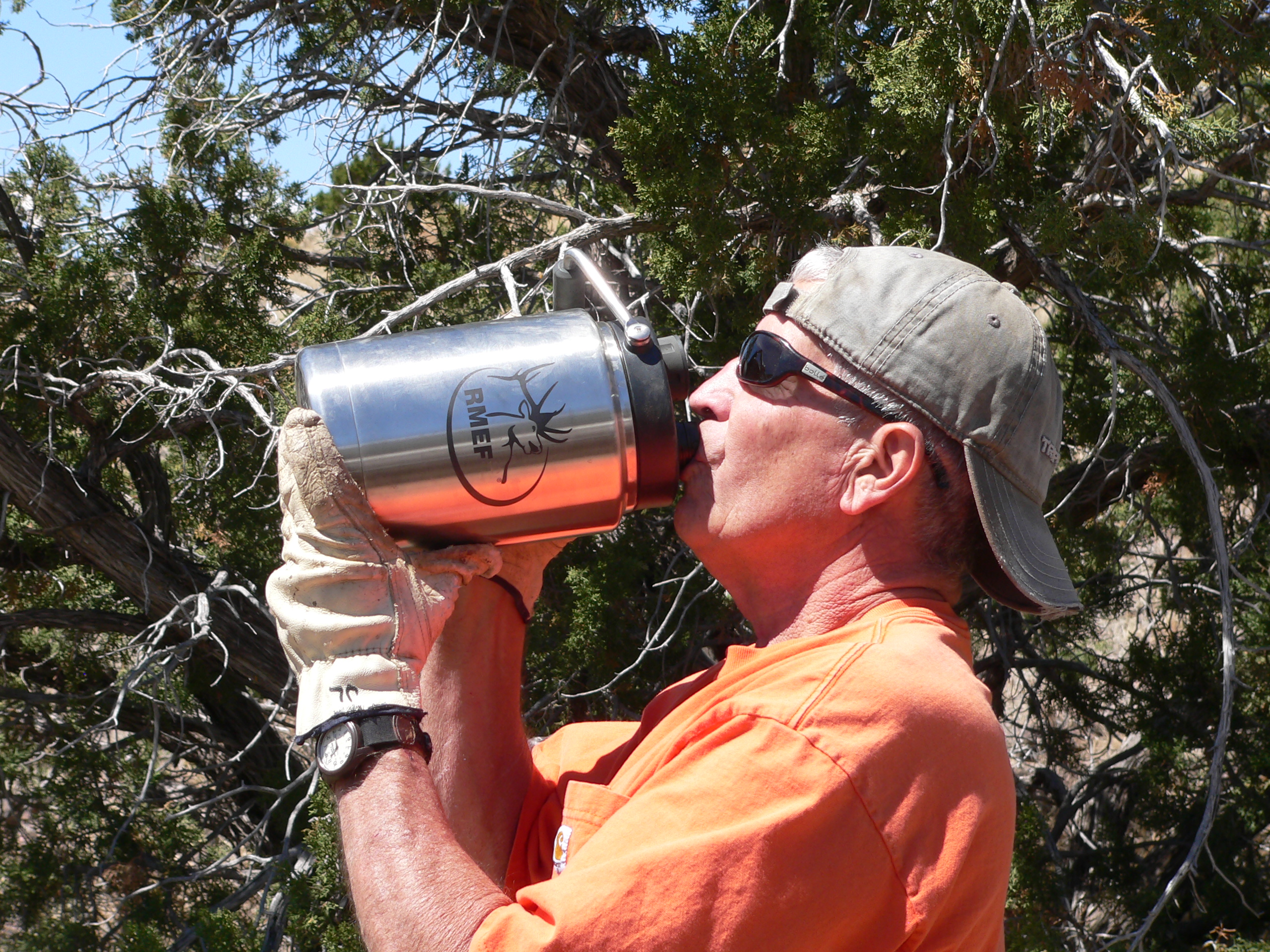 In May 2021, members of the Rocky Mountain Elk Foundation’s Albuquerque Chapter joined other volunteers to brave the desert sun in the Chupadera Mountains of west-central New Mexico to carry out a conservation transformation. They removed umbrella wings from an old wildlife water drinker and installed a new 5,000-gallon poly storage tank, rubber-tired trough drinker in its place that includes a 1,000-square-foot metal catchment apron.
