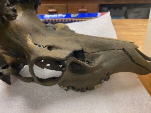 The Cranbrook Institute of Science located in nearby Bloomfield Hills utilized its radiocarbon dating lab to determine the age of the antlers. The lab’s director maintains the antlers belong to the extinct Eastern elk species.