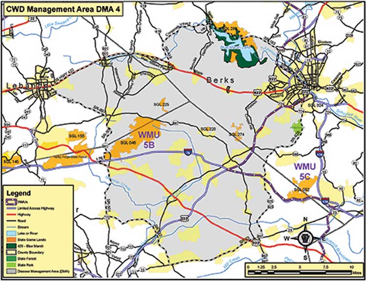 The Pennsylvania Game Commission established Disease Management Area 4 (DMA 4) in response to a CWD-positive deer recently detected at a captive deer farm in Lancaster County.
