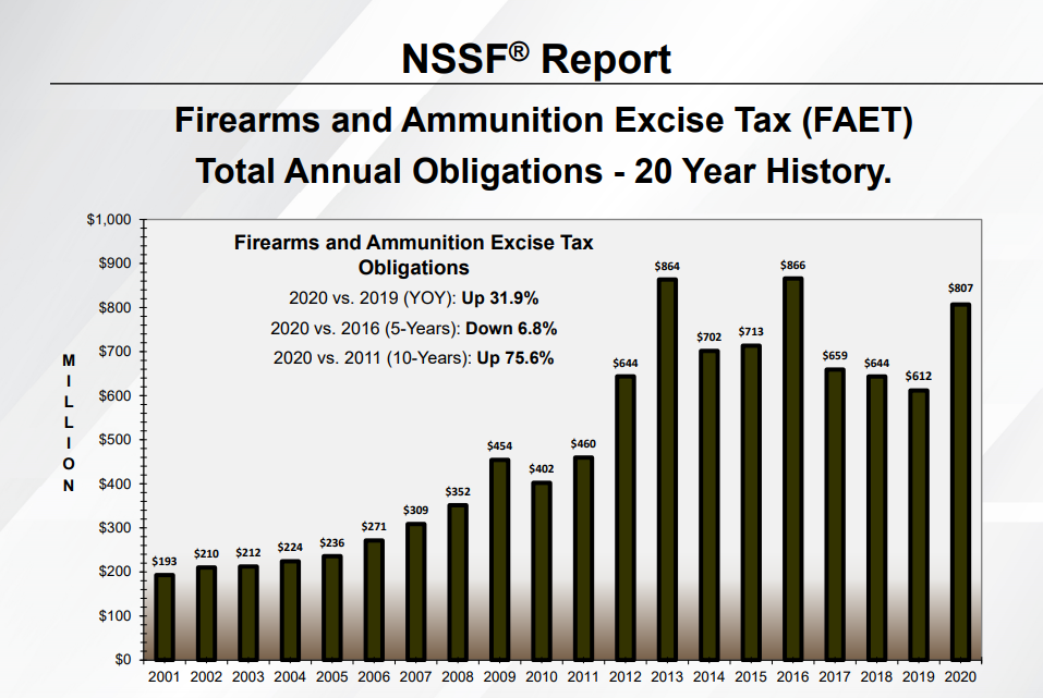A new National Shooting Sports Foundation report shows Firearms and Ammunition Excise Tax collections for the fourth quarter of the 2020 calendar year totaled $267.5 million, marking an increase of more than 70 percent from the last quarter of 2019 and another record quarter for contributions.