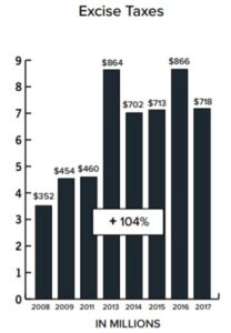Not only did the impact increase from $19.1 billion to $51.4 billion over that time, but the number of full-time jobs the industry supports increased by 87 percent, from 166,000 to nearly 310,000.