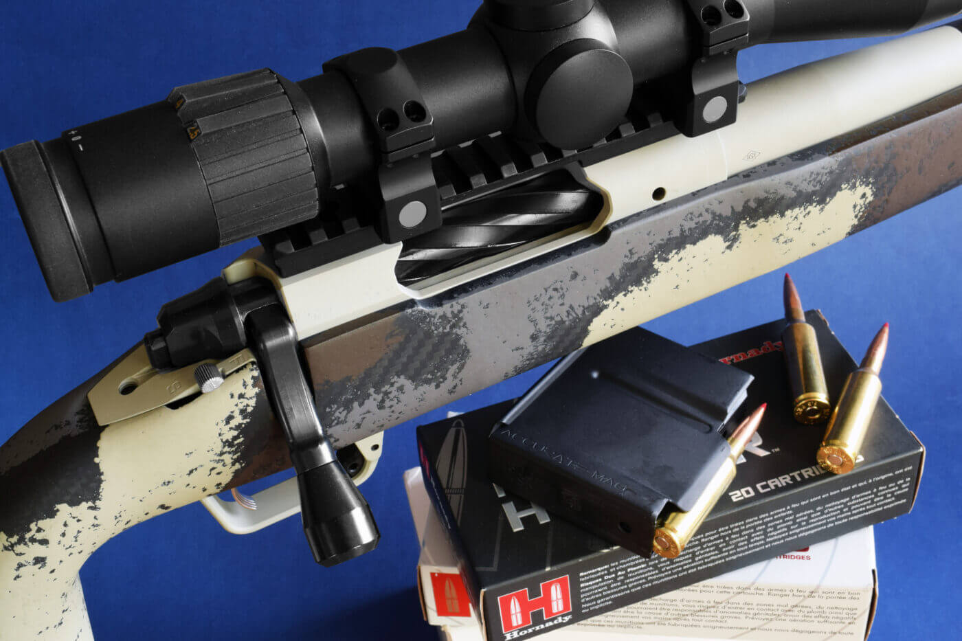 A carbon fiber stock and available carbon fiber-sleeved barrel helps the rifle be both ruggedly strong and portably light.