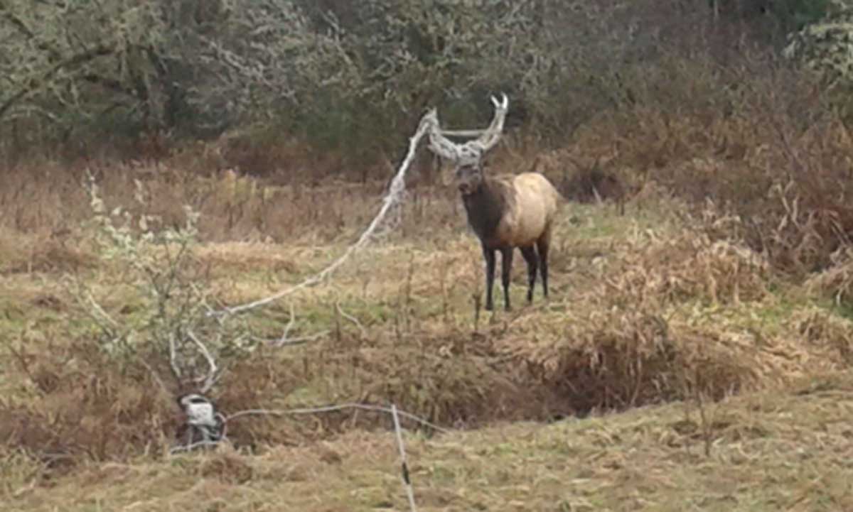In an effort to avoid a possible jousting match with a bull elk, Officer Schroeder, Sergeant Brad Rhoden, and WDFW biologists darted this bull before disentangling it from an electric fence. Once he woke up from his short nap, the debris-free elk ran off fit and healthy.