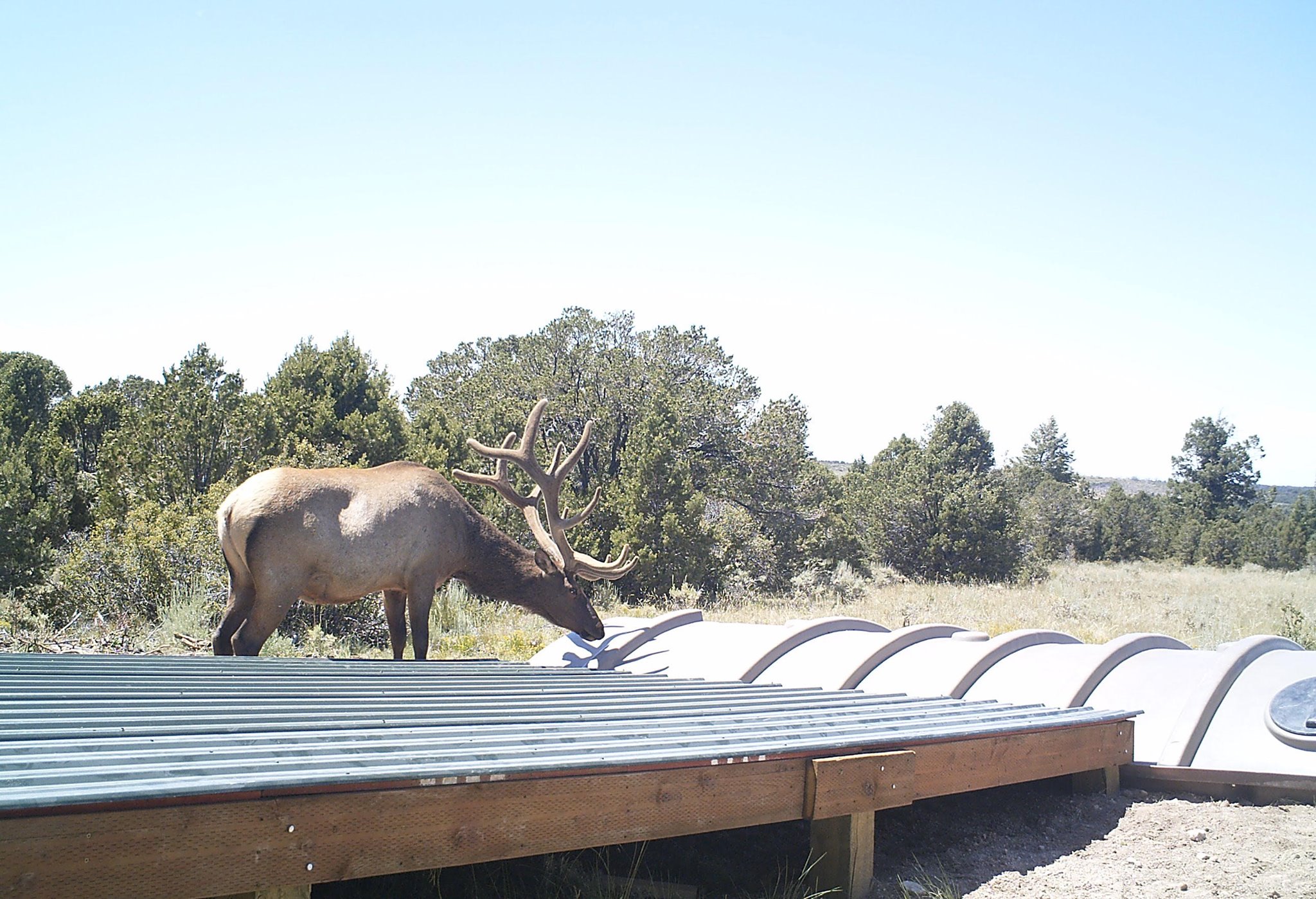 Below is a news release from the Utah Division of Wildlife Resources. The Rocky Mountain Elk Foundation assisted with a number of Utah wildlife guzzler projects over the years. The above image shows the stripped guzzler while the photo below shows what the guzzler should look like.