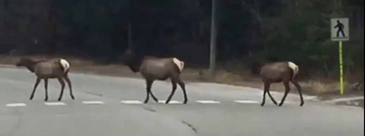 It seems elk in southwestern Alberta are a law-abiding bunch. Seanna Jefferson managed to get video of a few of them as they used a crosswalk in Canmore. You can even hear one of the car’s occupants giggle as she said, “Abbey Road, elk style.”