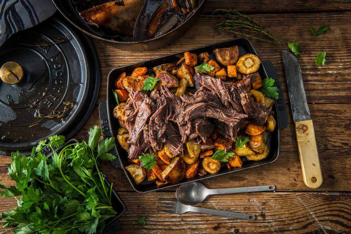 Serve elk with the reduced braising liquid over the top. Enjoy!