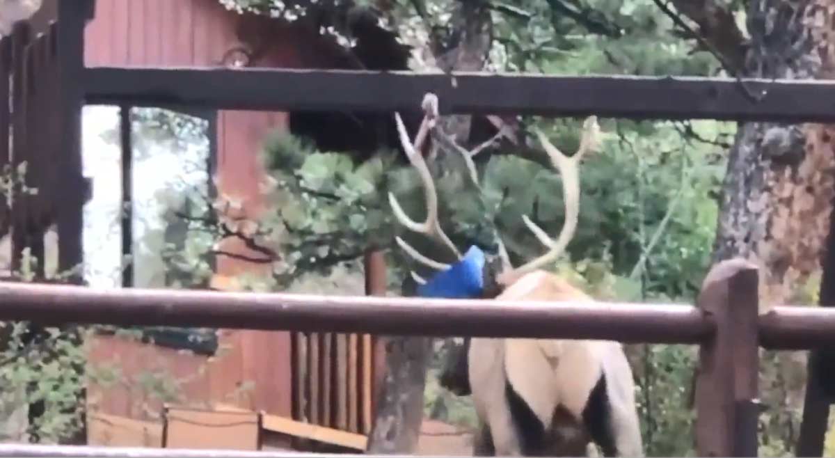 Crivello called Colorado Parks and Wildlife which dispatched an officer with a tranquilizer gun. He shot and the bull went down. After the swing was removed, the elk eventually regained its senses and wandered back into the forest.