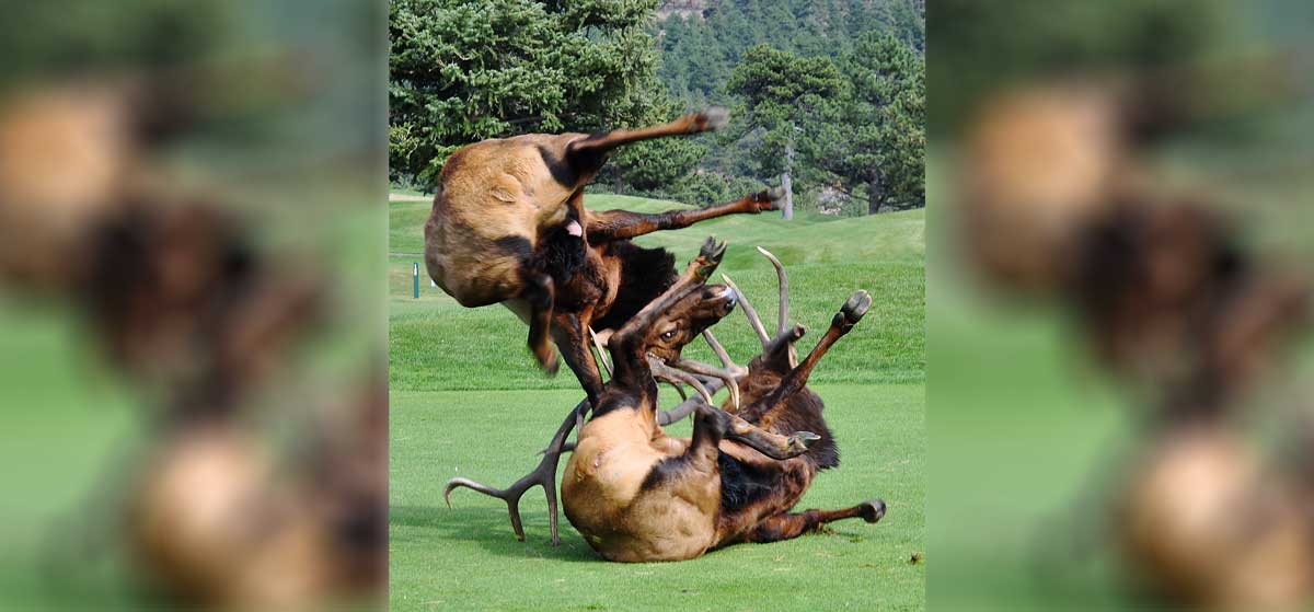 It’s rare, but given the application of sufficient force, it does happen. As any student of jujitsu knows, the crux lies in leverage—using the opponent’s strength and motion against them. RMEF member Dan Fischer captured this definitive example on the 7th green of northern Colorado’s Estes Park Golf Course last September. With several big bulls screaming and rampaging nearby, Fischer selected a Nikon D90 instead of a 9 iron.