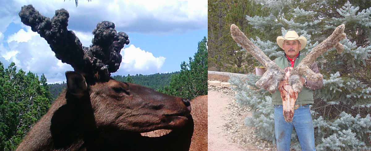 So we asked RMEF’s Director of Science and Planning, Tom Toman, to weigh in:This looks like what they call a cactus buck in deer or cactus bull in elk. It happens less in elk than deer, but I have not found a reason for that. The velvet is never shed due to low testosterone levels and each subsequent year’s growth is laid over the previous year’s velvet. It is often due to an injury to the testicles. It can also be caused by cryptorchidism, which is a condition where either one or both testicles did not descend from the abdomen into the scrotum.