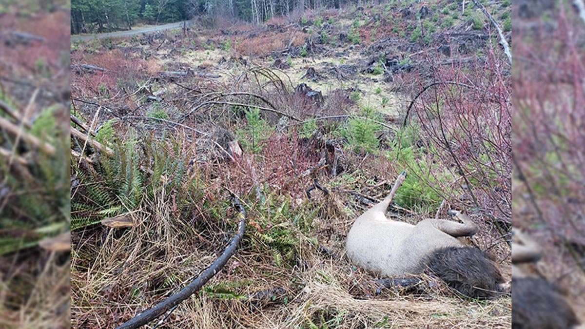 A cow elk was shot and left to waste near the Valsetz Mainline Road in Polk County on Feb. 11, 2022. OSP would like to hear from anyone with information on this case.