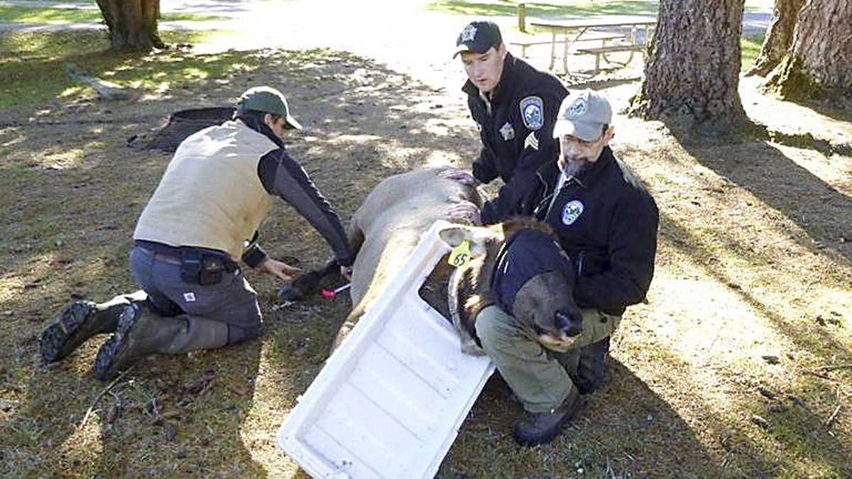 When elk wander into towns and neighborhoods, trouble may often follow. That’s what happened when a cow elk somehow got its head stuck in a giant cooler lid near Dosewallips State Park in western Washington.
