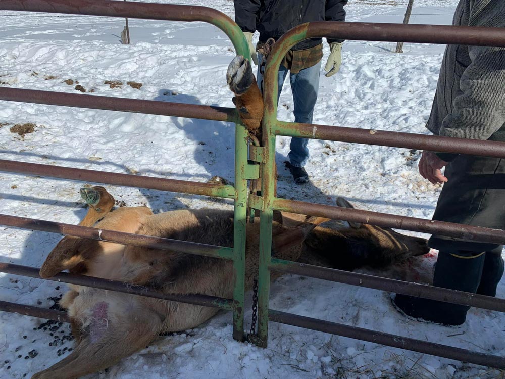 Lewis said the elk was pretty weak since it tried to head butt him but didn’t have the energy to do so with any force. It then ran off to join the nearby herd.