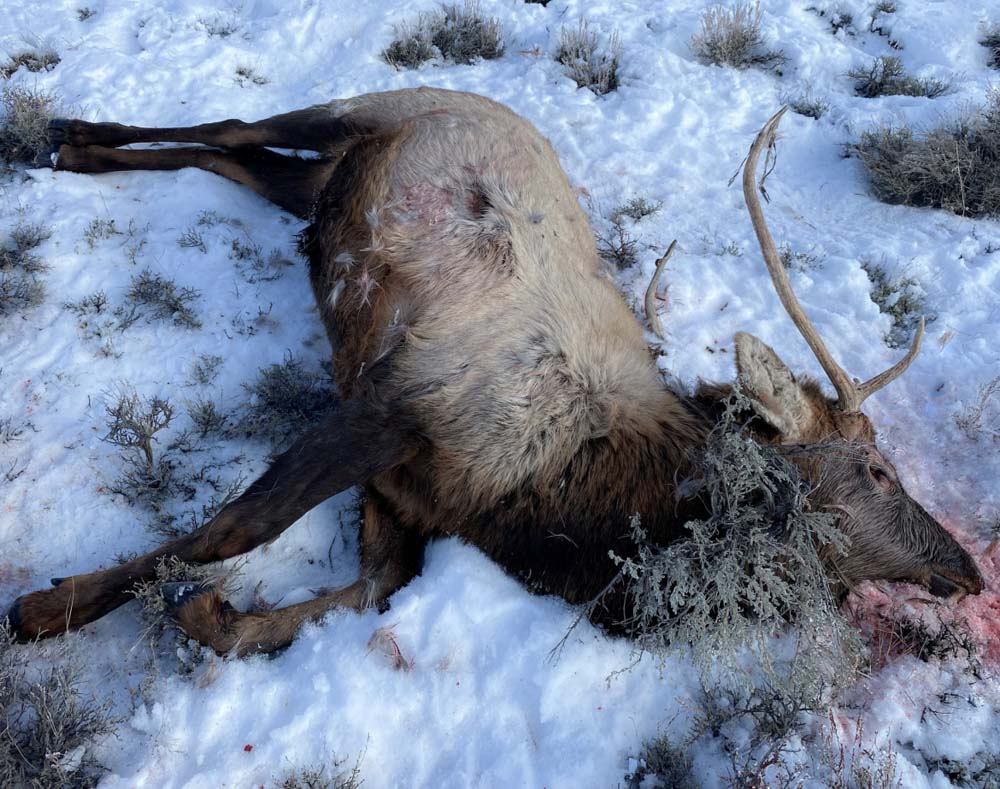 On November 27, 2022, conservation officers discovered a bull elk that was shot and left to waste just south of the Pass Creek Road near Mackay, Idaho. The temperature of the carcass led officers to believe it had been shot earlier that same day. Remains of a second elk and drag marks were also found nearby. No bull harvest season is currently open in the area.