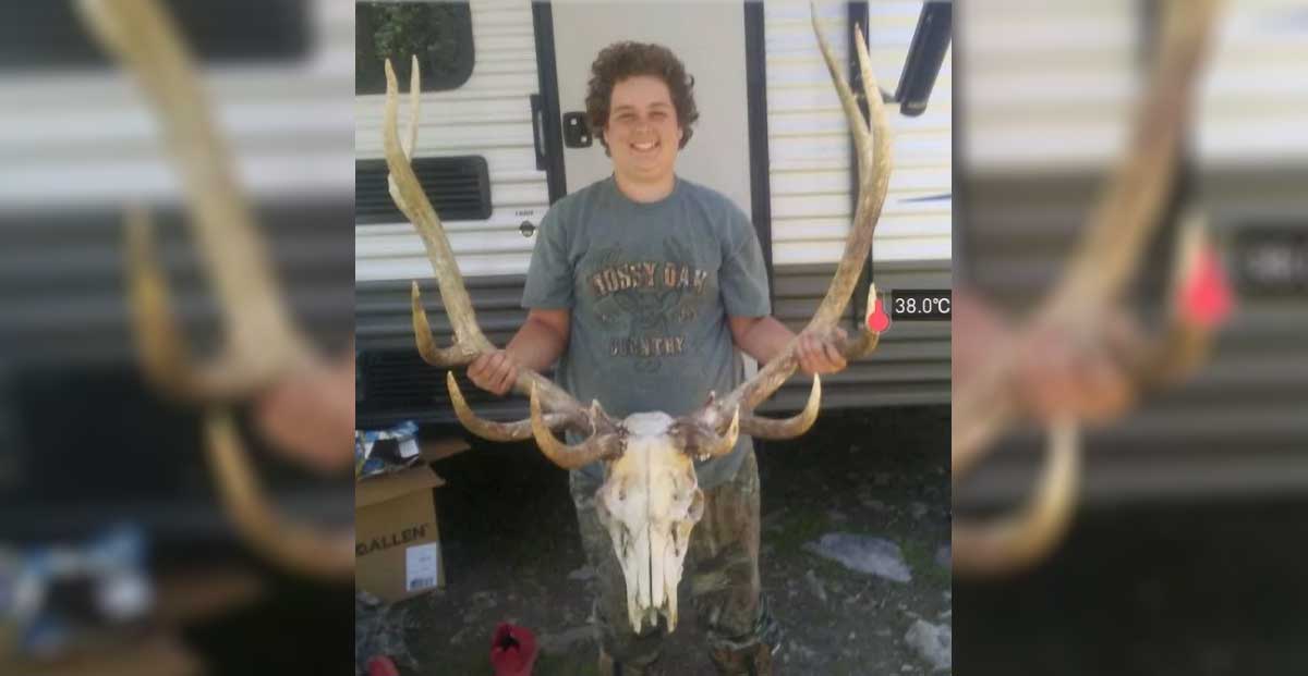 According to KFVS-TV, Davin and his father were hunting mushrooms near Van Buren in the southeastern part of the state when he came across an elk skull with massive antlers attached to it. The 7 x 6 rack is reported to span 347 inches. A game warden donated an elk tag so the family can get it mounted.