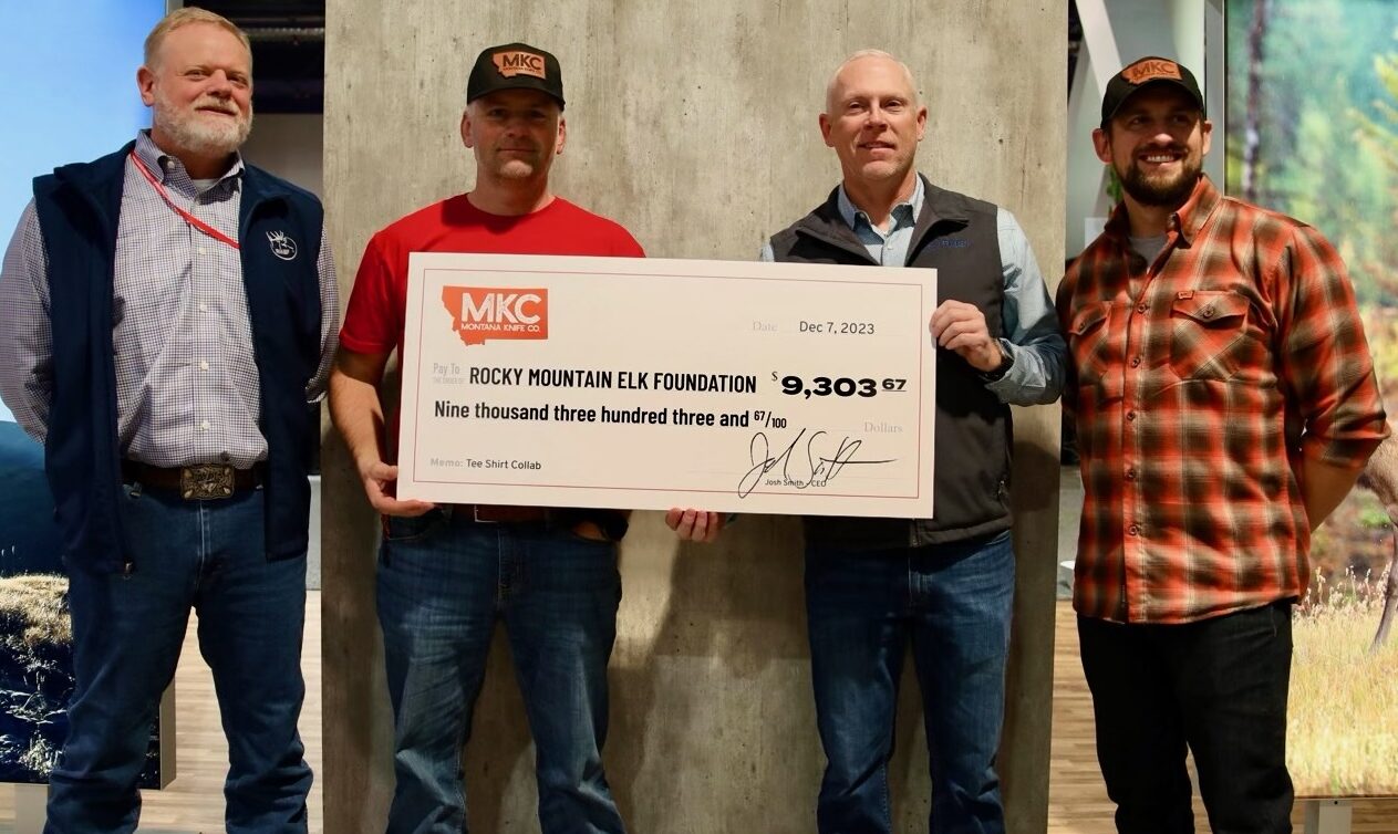 The Rocky Mountain Elk Foundation would like to say thank you to our conservation partners at the Montana Knife Company (MKC) for its generous donation of $9,303.67! MKC designed and launched a co-branded t-shirt (see image below) at the grand reopening of our Elk Country Visitor Center earlier in 2023.