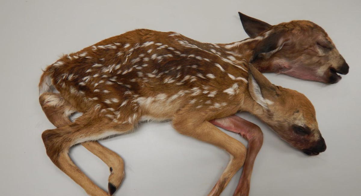 D’Angelo conducted a necropsy and found the fawns were both female and shared the same body but had different necks and heads. They also shared the same liver but had two hearts.