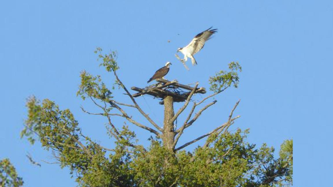 The platforms went up in 2015 thanks to RMEF volunteers but now there is a pair of osprey nesting. The hope is approximately 35 days later one or more chicks will hatch and make a little history.