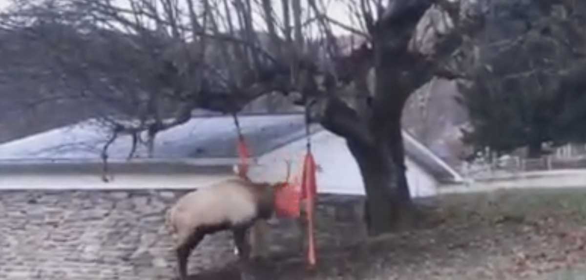 He called local law enforcement. Two deputies answered the call, climbed on the roof and cut the elk free.
