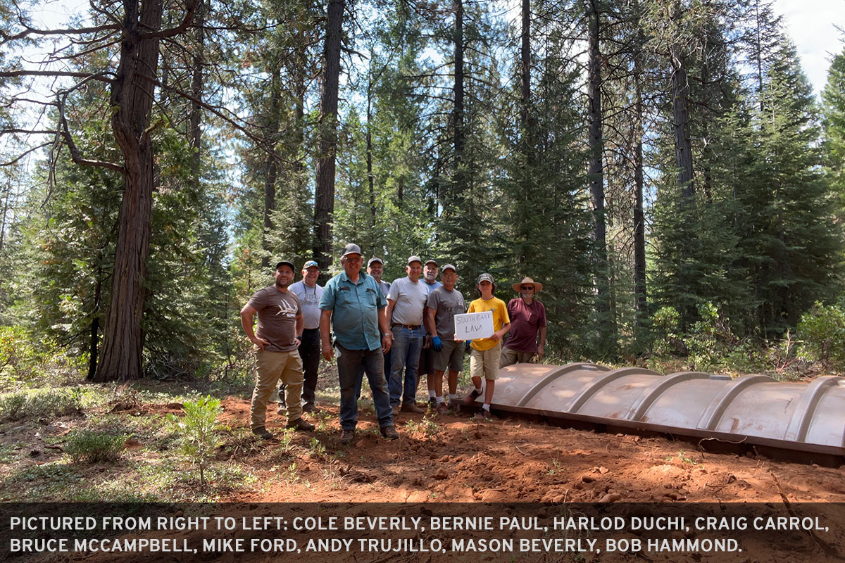 On July 30th, 2022, seven RMEF volunteers met in the Shasta Trinity National Forest with Harold Duchi (Siskiyou County Guzzler Rehabilitation project coordinator) and Bernie Paul (the backhoe operator) to install three essential BOSS Guzzlers in new and replacement sites that were evaluated for their benefit to elk and wildlife by a district wildlife biologist, and our Siskiyou County Fish and Game Guzzler Project Manager, Harold Duchi.