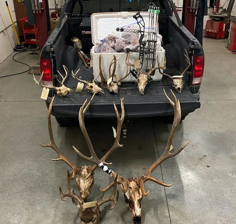 The $75,000 in fines is a full accounting of all of the game animals Erickson poached, including six deer, one 4×4 mule deer buck, and one 4×5 white-tailed buck. Walker has also poached eight Rocky Mountain elk including three trophies: one 4×4; one 5×6 and a very large 7×7 bull that would be the top trophy in any hunter’s collection, according to Hall.