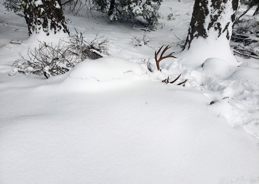 After questioning, the driver eventually admitted to Sgt. Timko that he had shot the deer while it was in his headlights as he and his juvenile companion drove along private property on Rowe Creek Road. He did not have permission to be on the property. The man shot the buck multiple times using a semi-automatic rifle with a high-capacity magazine. (When used for hunting big game in Oregon, semi-automatic rifles are limited to magazines with a capacity of no greater than five cartridges.) He then drove away, leaving the injured animal.