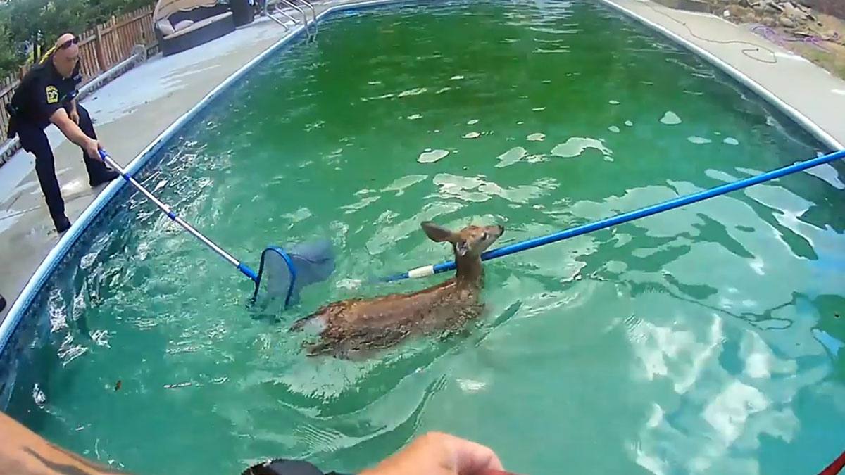 If wasn’t exactly their everyday kind of call. Police officers in Parma, a suburb of Cleveland, got the call about two deer fawns that could not get out of a family pool. The homeowner previously tried to rescue the young whitetails for an hour before calling for help.