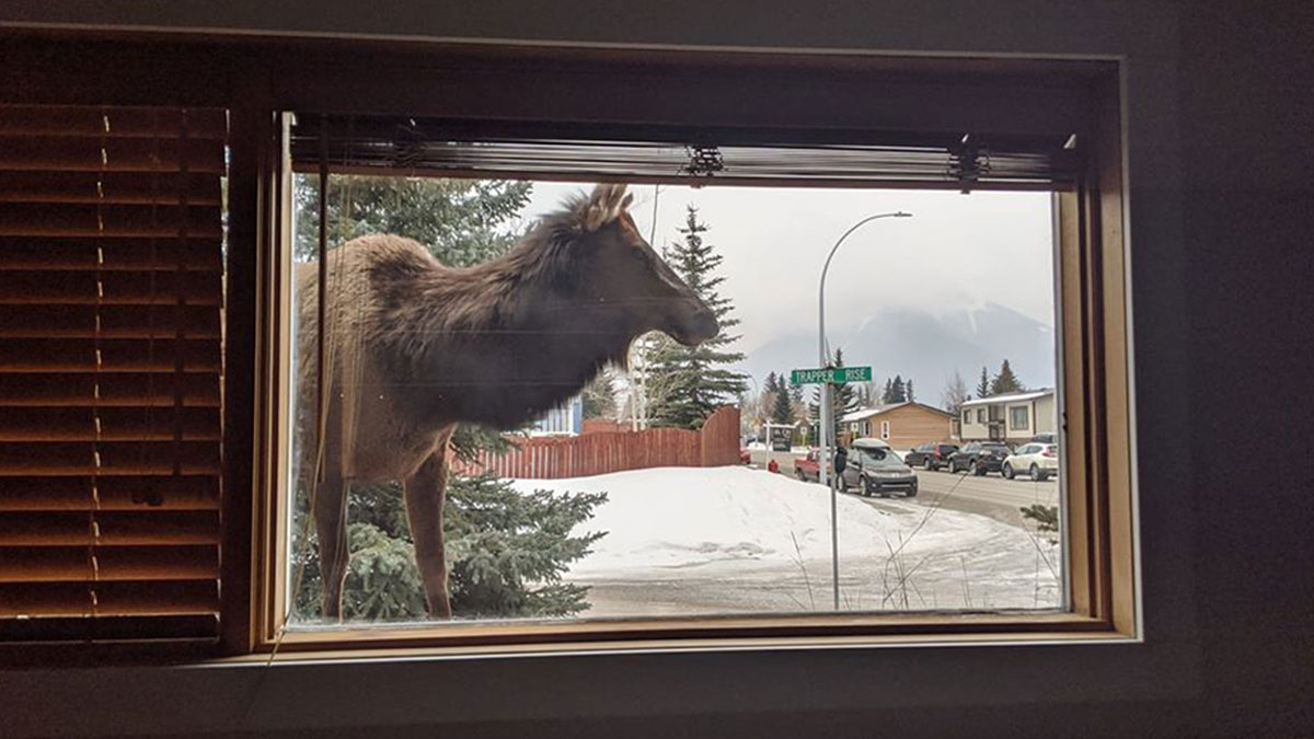 He then shared his photo with the aptly named Facebook group View from My Window along with this comment: “Canmore, Canada, 8 a.m. Town has become so quiet, the animals have started checking on us to make sure we’re doing okay.”