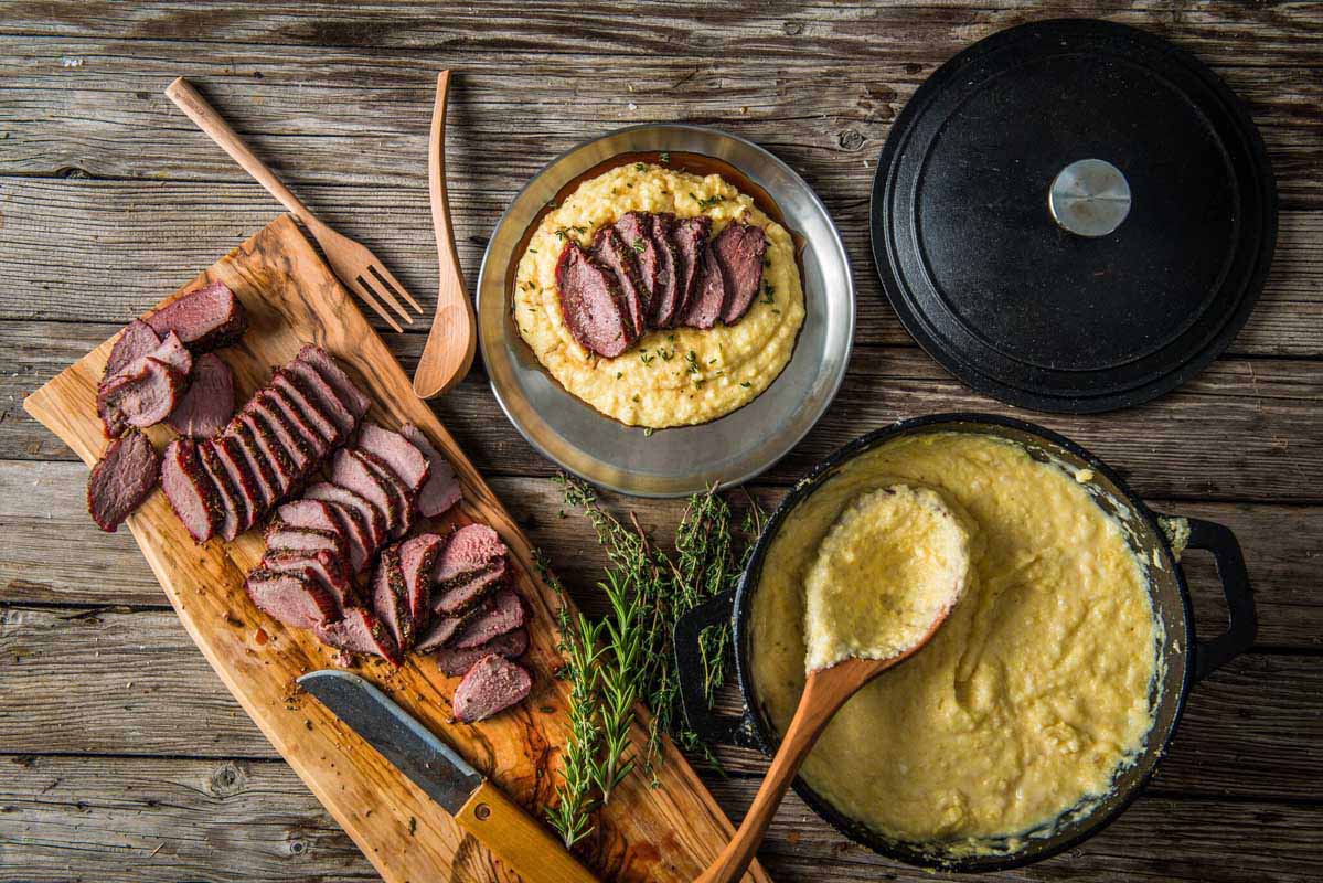 Tender elk loin is complemented by a simple rosemary and garlic seasoning, smoked to infuse wood-fired flavor, then roasted to juicy perfection. Ingredients 1 SPRIG ROSEMARY, MINCED