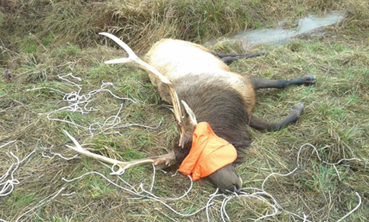 In an effort to avoid a possible jousting match with a bull elk, Officer Schroeder, Sergeant Brad Rhoden, and WDFW biologists darted this bull before disentangling it from an electric fence. Once he woke up from his short nap, the debris-free elk ran off fit and healthy.