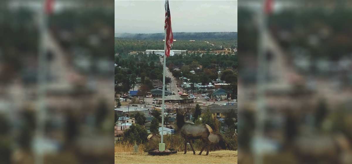 A small elk herd grazed above the central Arizona town of Payson when a cow elk stopped and gazed at the American flag for several minutes.