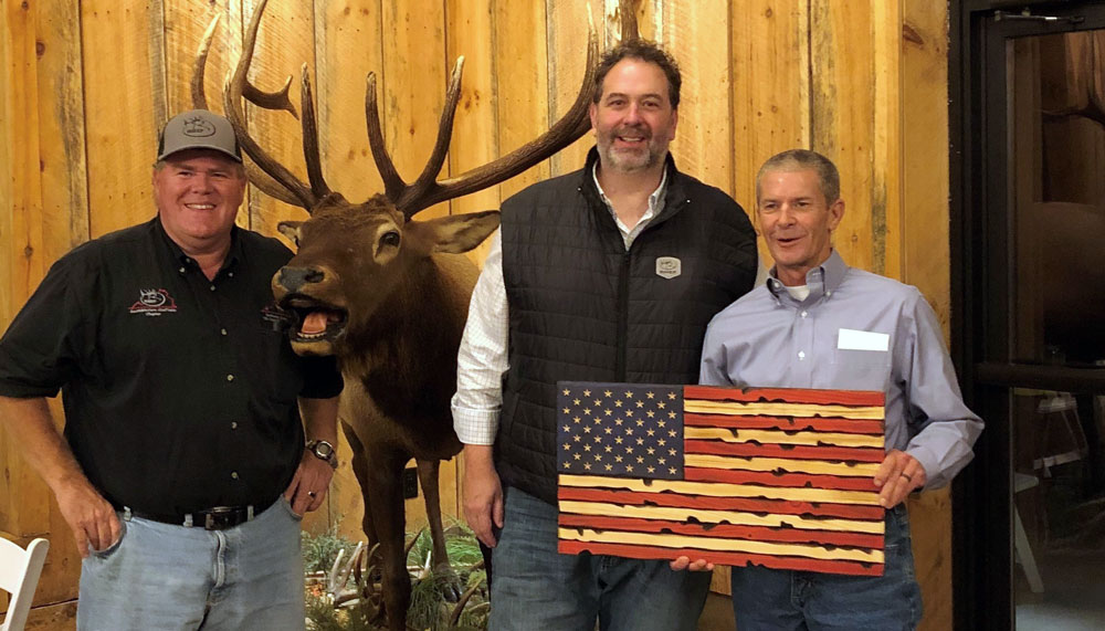 Photo (left to right): Leon Boyd (RMEF Southwest Virginia Coalfields Chapter chair, Chris Croy (RMEF regional director and Ward Burton (NASCAR driver/elk hunter)