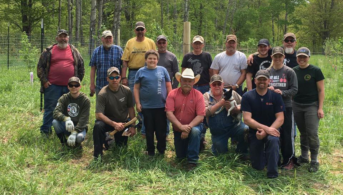 Eighteen volunteers from the Rocky Mountain Elk Foundation recently gathered at the Atlanta elk viewing site on the edge of the Pigeon River Country State Forest in Michigan’s elk country. They hailed from six different RMEF chapters and joined forces with several team members from the Michigan Department of Natural Resources as well as one AmeriCorps volunteer.