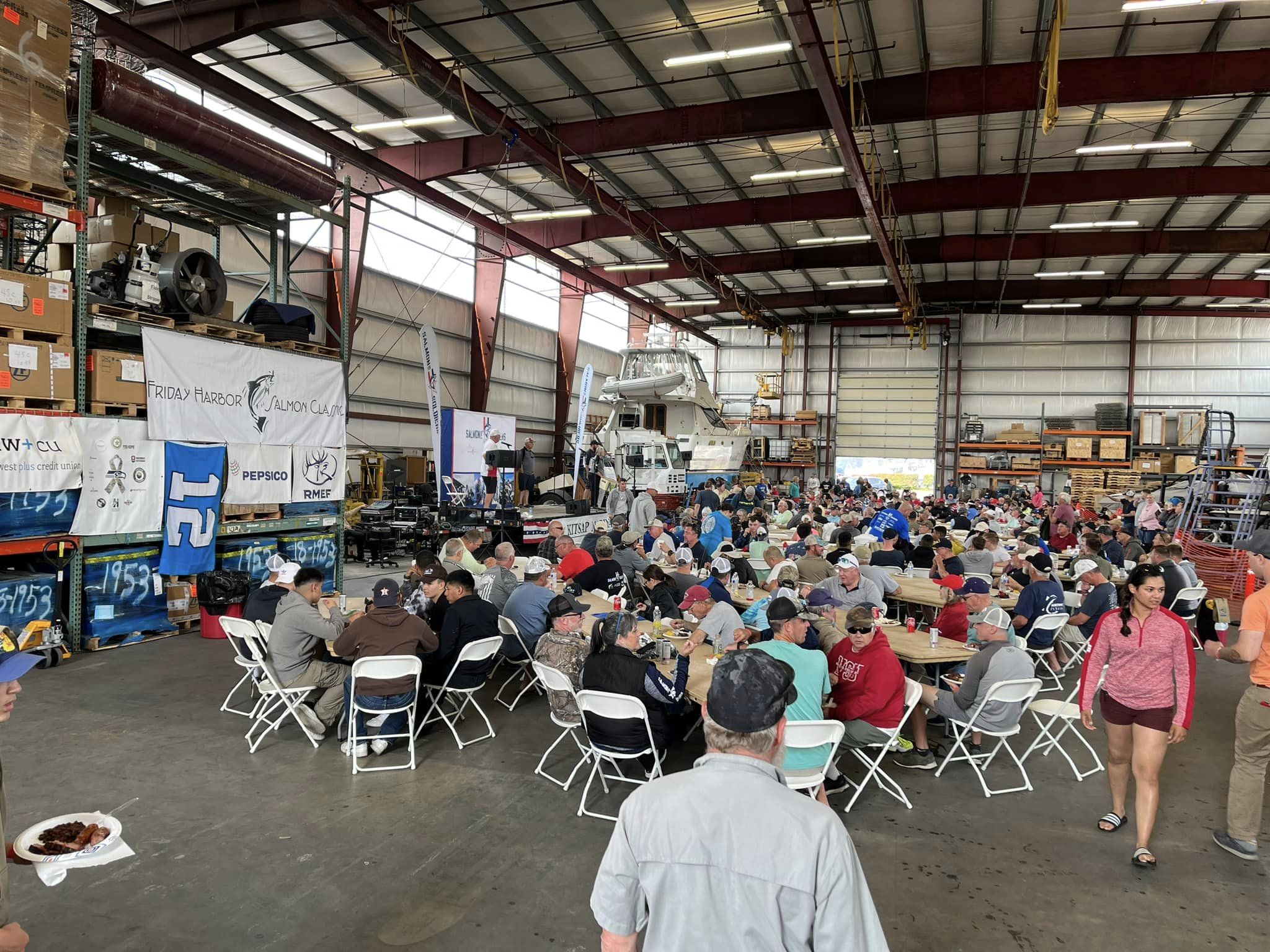 An armada of 100 volunteer boats hosted 400 veterans and active-duty personnel on a fishing adventure. Volunteers met the vets before dark for registration and to line up the participants with volunteer boat captains. When they came off the water several hours later, the volunteers put on a massive feed.
