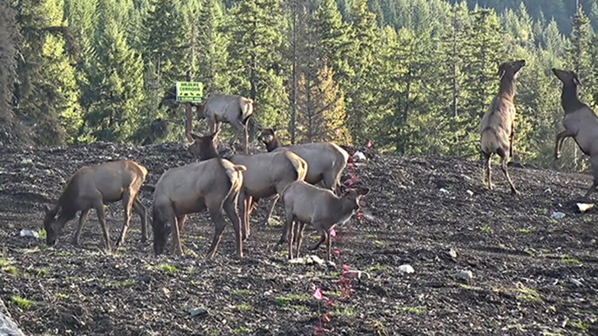 A herd of elk using a wildlife crossing over I-90 in Washington state. Image courtesy of WSDOT.