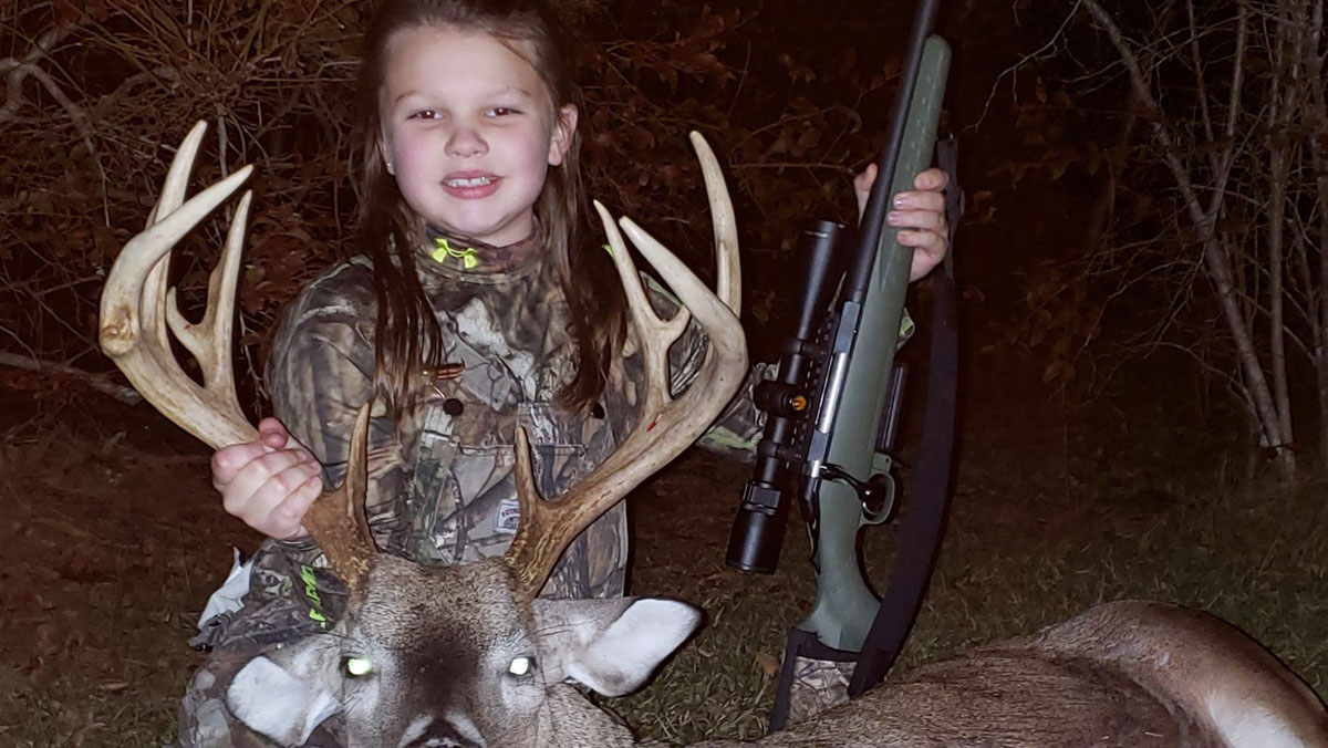 That is exactly what she did. Kate shot and dropped a 12-point whitetail buck, the sixth deer she shot in her young hunting life.