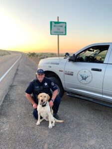 Buck and Trooper Wolcott will continue as a team, barring the unexpected, until Buck reaches retirement age, which is about nine years old. Part of Buck’s assignment, along with all Oregon State Troopers, is community development and relationship-building. A larger part is paws-on-the-ground nose work to detect poaching.