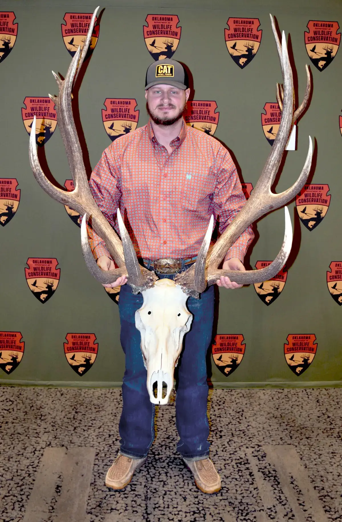 A four-man certified judging panel measured the 9-by-9 set of antlers on Dec. 29 at the Oklahoma Department of Wildlife Conservation headquarters and arrived at an official net score of 411 1/8. The rack also qualifies for the Boone and Crockett Club’s national all-time records book.