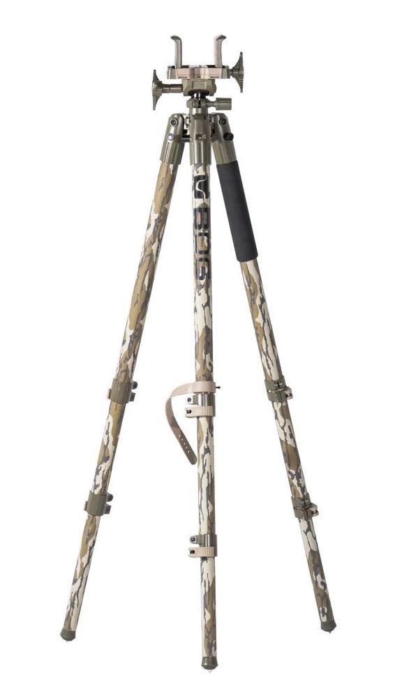 A steady rest is vital for rifle or muzzleloader shots, long or short. BOG introduces the Camo DeathGrip shooting tripod to deliver a stable platform for hunters in any situation. From prone to standing height adjustment, the Camo DeathGrip also features 360-degrees of pan for fine-tuning your aim, steadied with a tension adjustment. With the ability to adjust the cant of your firearm to 25-degrees for shooting on a slant, this shooting rest delivers great versatility. An integrated bubble level gives you instant confirmation of levelness. Get it in Mossy Oak Bottomland or Realtree EXCAPE camouflage for $199.99. Find out more at www.boghunt.com.