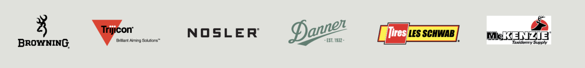 Great Elk Tour sponsors include Browning, Danner, Nosler, Trijicon, Les Schwab Tires, and McKenzie Taxidermy Supply.