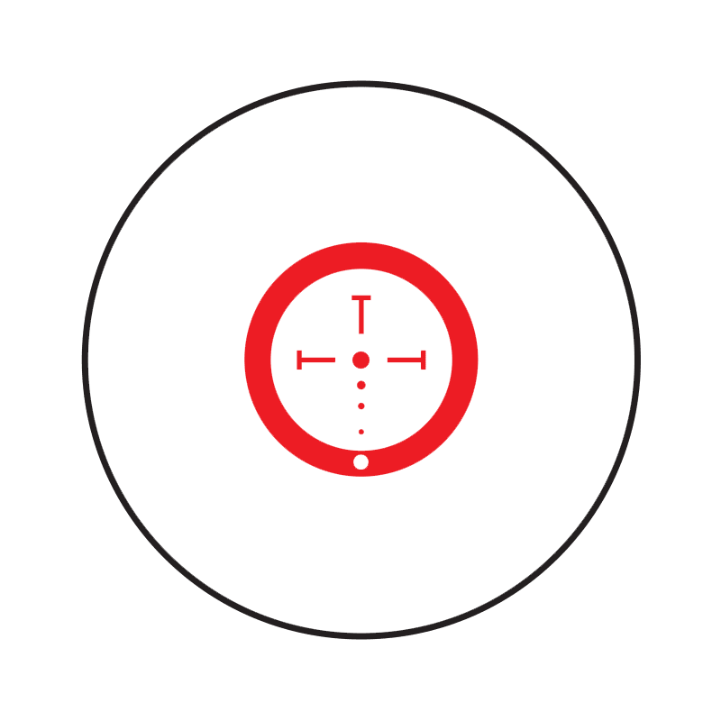 The shape can be a simple circle, circle with a dot, chevron, and many others. They are not meant to add range but will add a little precision along with speed. Many 3-gun shooters adopted these scopes before red dot sights became popular. They are useful in their own situation but should be avoided on any gun intended to shoot moderate or long-range unless you really know what you want the gun to do.