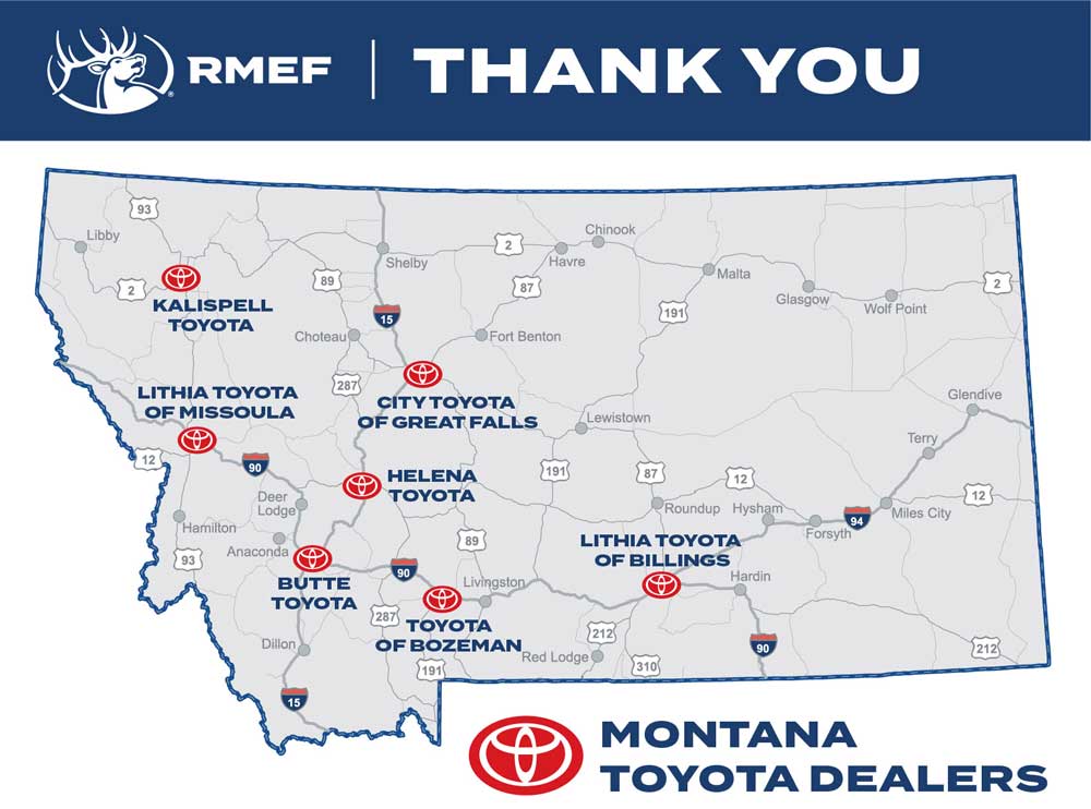 RMEF cannot thank the Montana Toyota Dealers enough for their investment in Elk and Elk Country and hope that you consider supporting those who give back to what you care about when shopping for your next vehicle purchase.